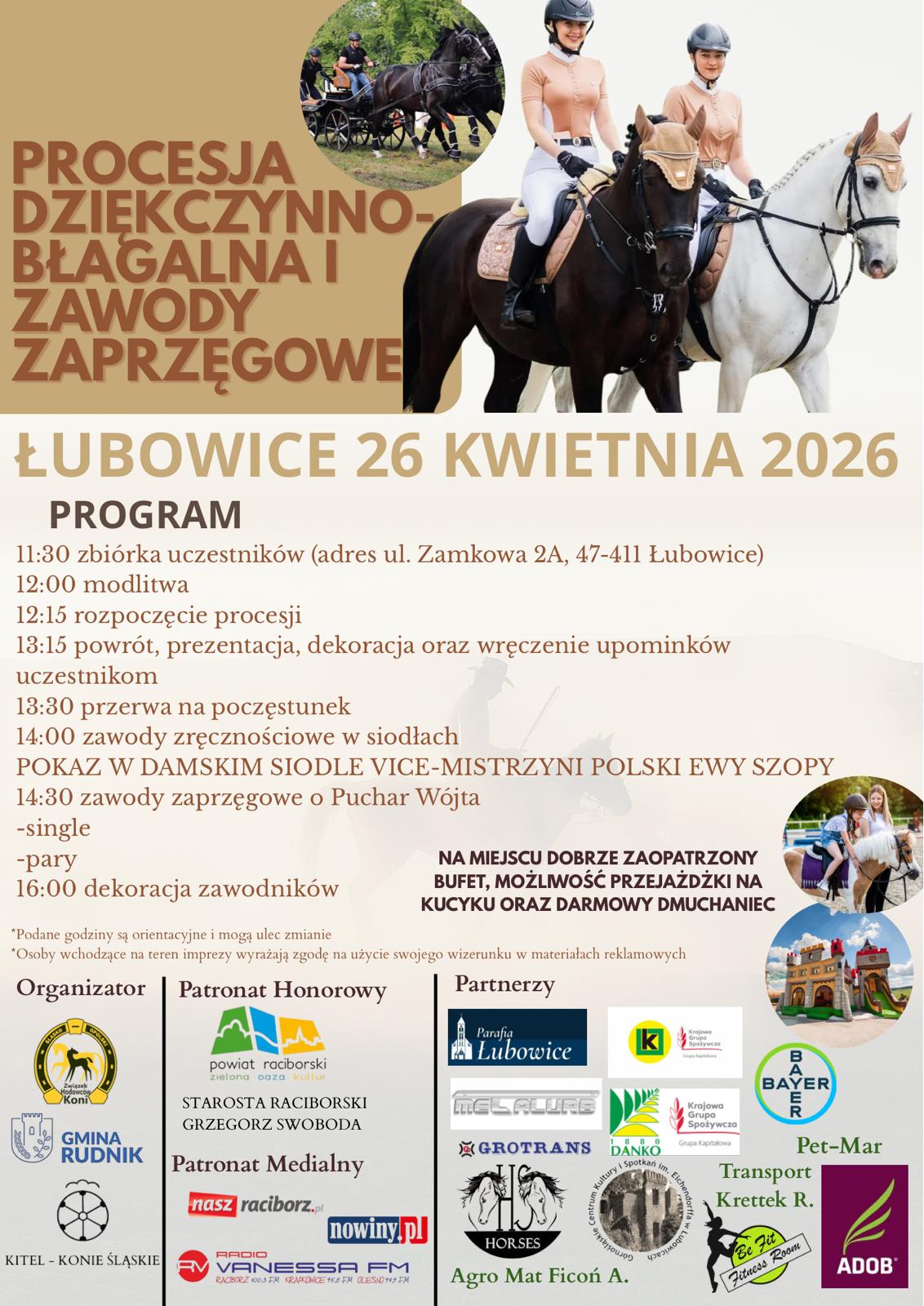 ŁUBOWICE 26.04.2026 – Procesja konna i Zawody Zaprzęgowe